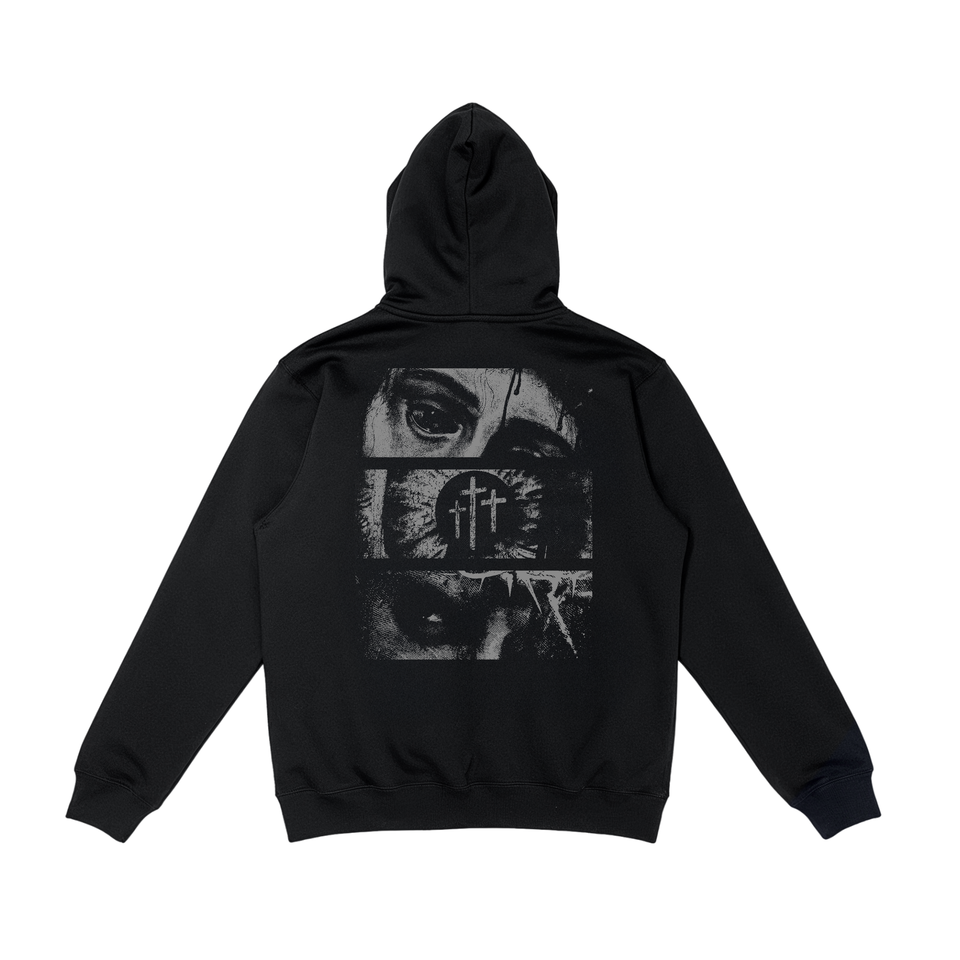 Moćan hrišćanski Duks i snažnom porukom vere. Na leđima dominira LIK ISUSA HRISTA I OKO KOJE IMA U SEBI 3 KRSTA