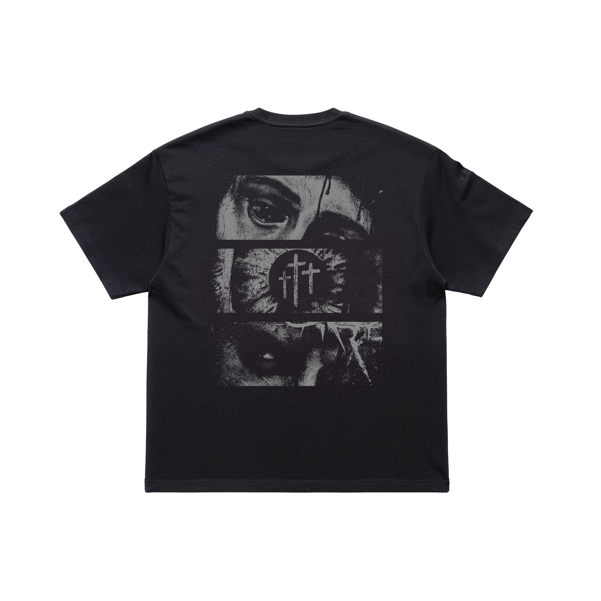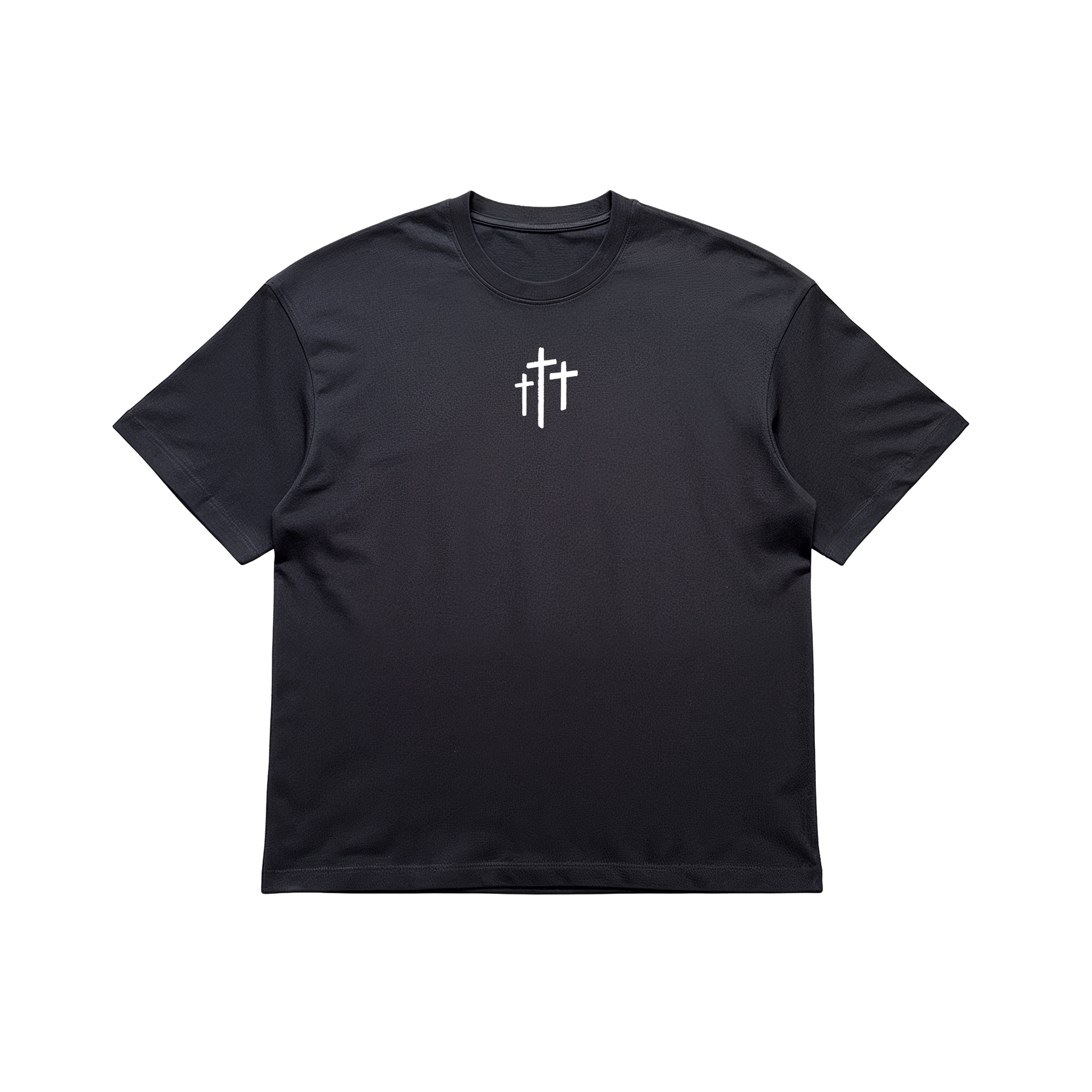 Hrabra vera. Moćna poruka. Ova oversized majica nosi težinu žrtve i spasenja kroz svoj upečatljiv dizajn. Sa dizajnom Isusa Hrista na ledjima 3 krsta.