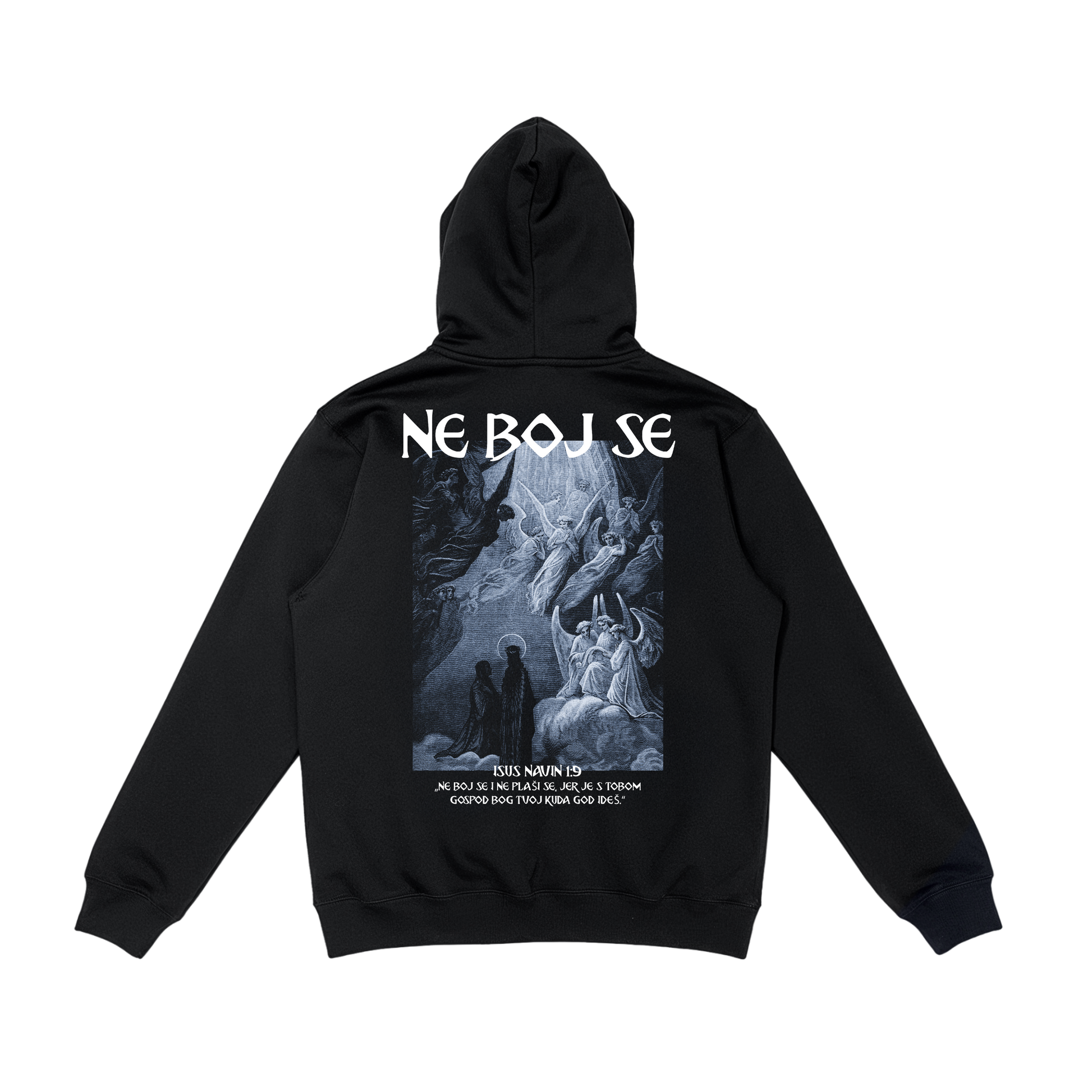 Moćan hrišćanski Duks i snažnom porukom vere. Na leđima dominira natpis "NE BOJ SE"